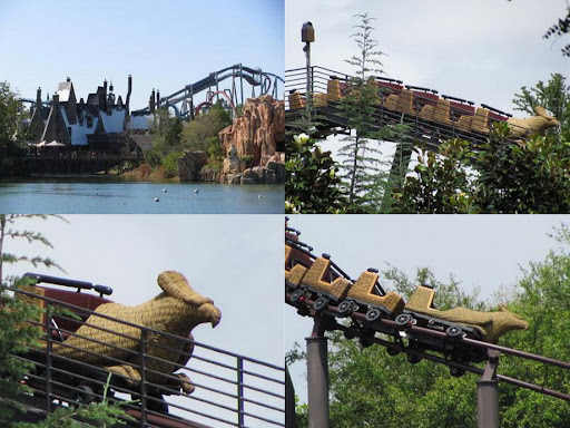 Хижина Хагрида по пути к семейным американским горкам «Полёт на Гиппогриффе». Перед поездкой на аттракционе Хагрид дает инструкции, как правильно кататься на Гиппогриффе.